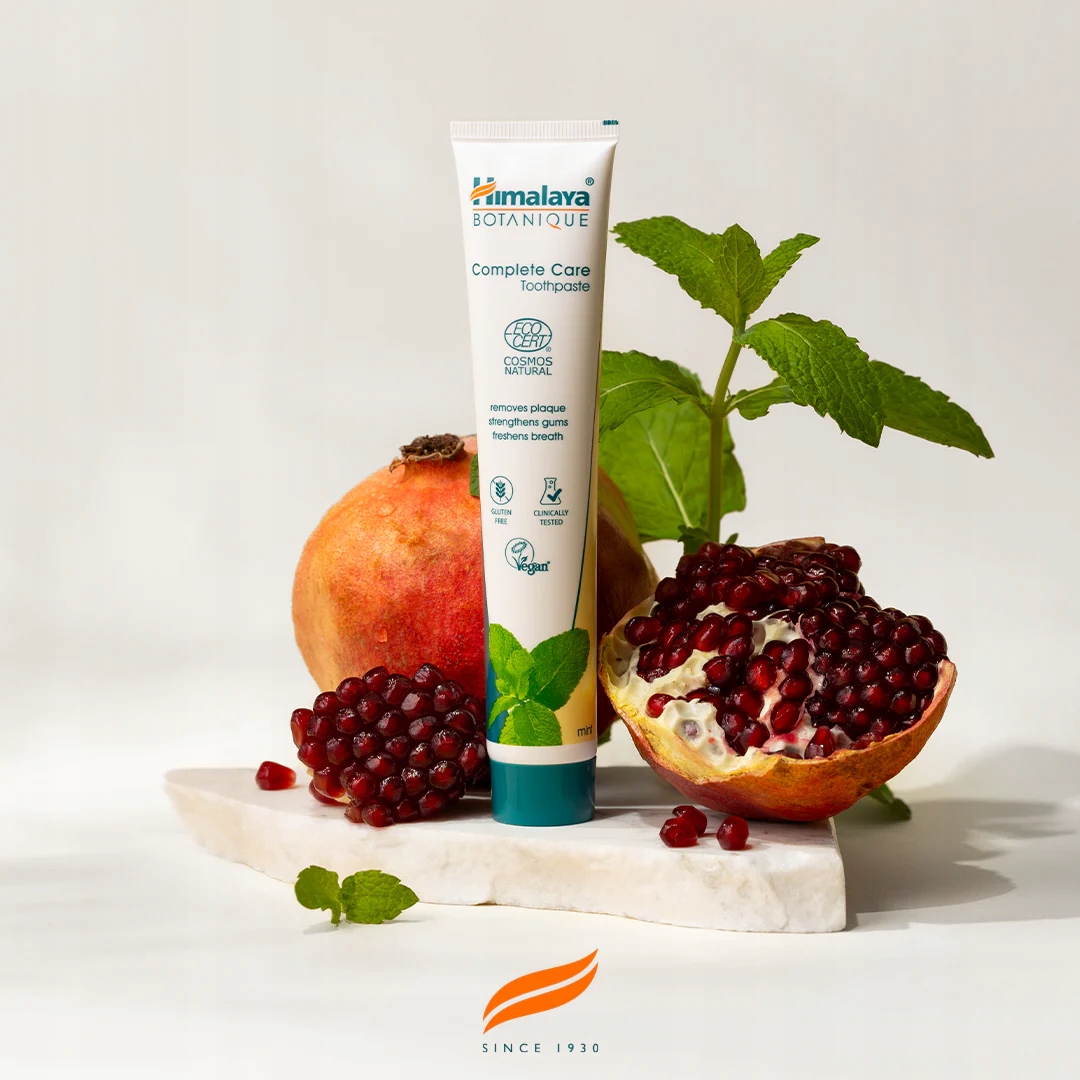Himalaya Botanique Complete Care toothpaste is a herbal formula with a refreshing combination of Neem, Pomegranate and Mint that helps remove plaque, strengthen gums and freshen breath.