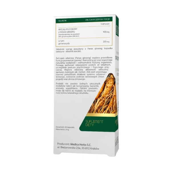 Ginseng (Panax ginseng) supports proper cognitive functions (memory and concentration) and supports the body’s natural efficiency and physical endurance. It helps maintain an appropriate level of vitality, especially during mental and physical fatigue. It supports proper sexual activity for both men and women. Ginseng also supports the proper functioning of the immune system, especially during seasonal weather changes and the winter period.