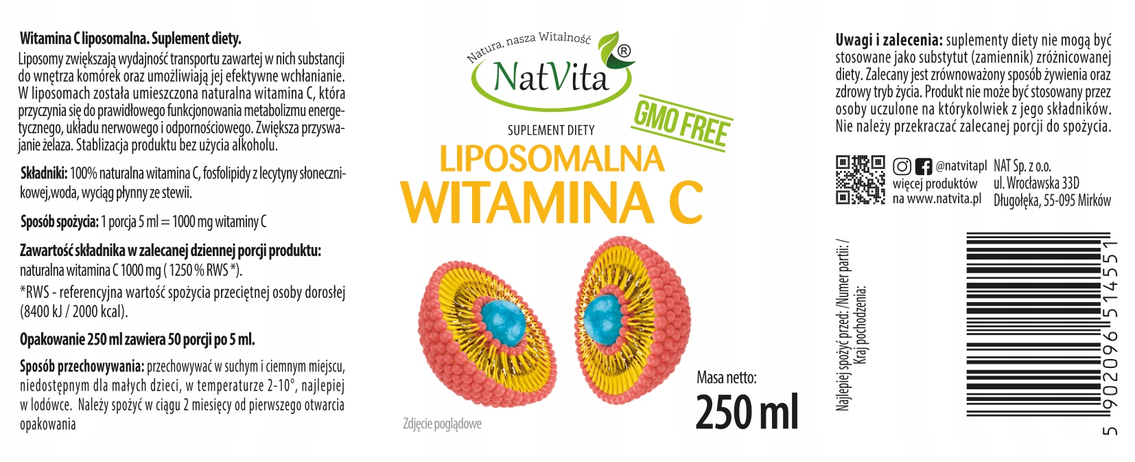 Liposomes increase the efficiency of transport of the substance contained in them into the interior of cells and enable its effective absorption. Natural vitamin C has been placed in liposomes.